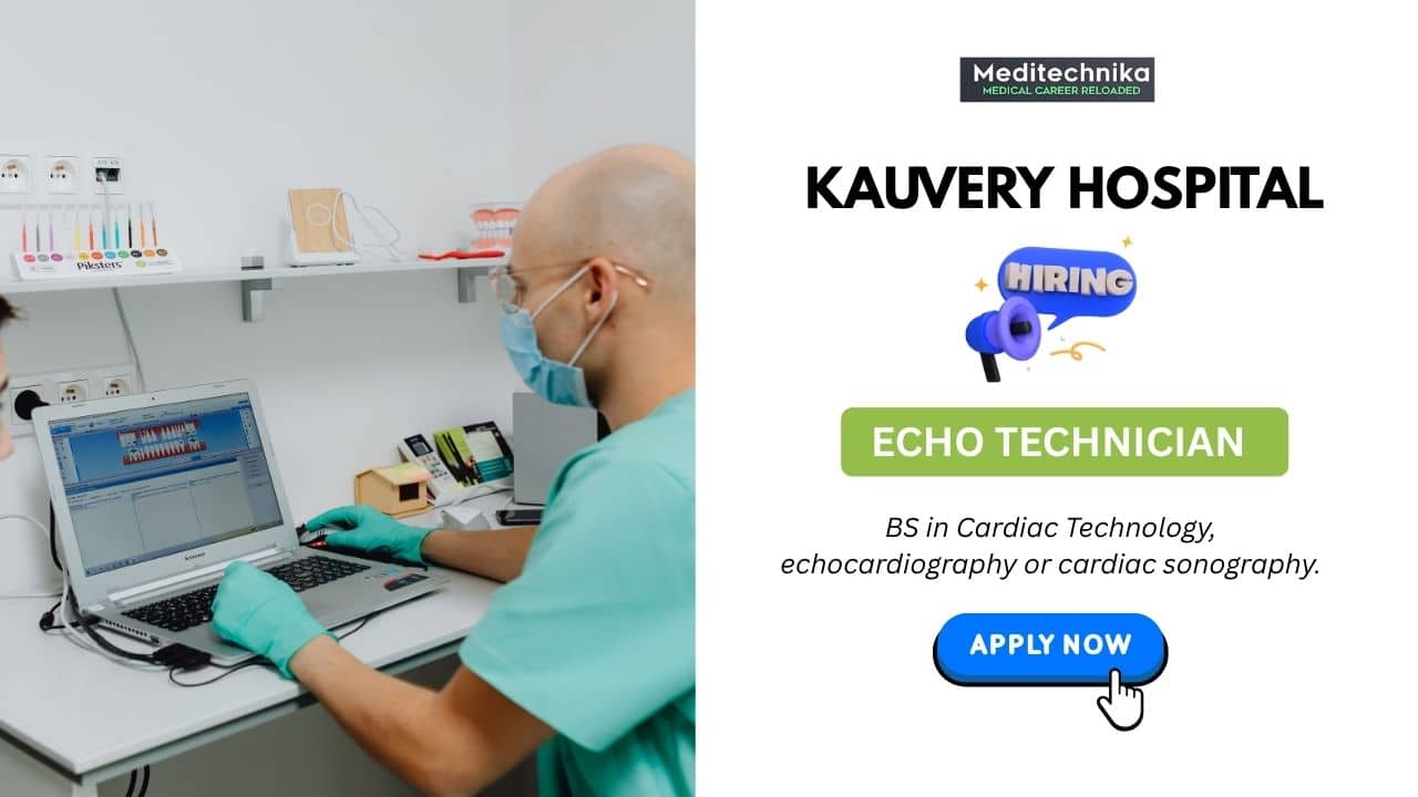 Cardiac Technician Jobs- Are you passionate about cardiac care and diagnostic excellence? Kauvery Hospital is inviting dedicated professionals to join its team as Echo Technicians in Tiruchirapalli. This role offers an exciting opportunity to work with advanced cardiac imaging technology, contribute to life-saving diagnostics, and grow within one of South India’s most trusted healthcare institutions. If you have a strong foundation in echocardiography and a heart for patient-centered service, this position is your gateway to a rewarding medical career.