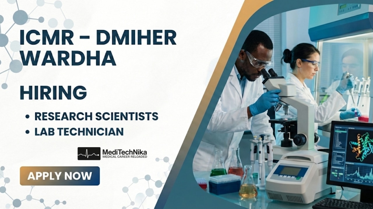 ICMR recruitment 2026 has been announced for multiple contractual positions under an ICMR-funded project at Datta Meghe Institute of Higher Education and Research (DMIHER), Wardha, Maharashtra. This ICMR recruitment offers excellent opportunities for research scientists and laboratory professionals to work on nationally important biomedical and clinical research projects.