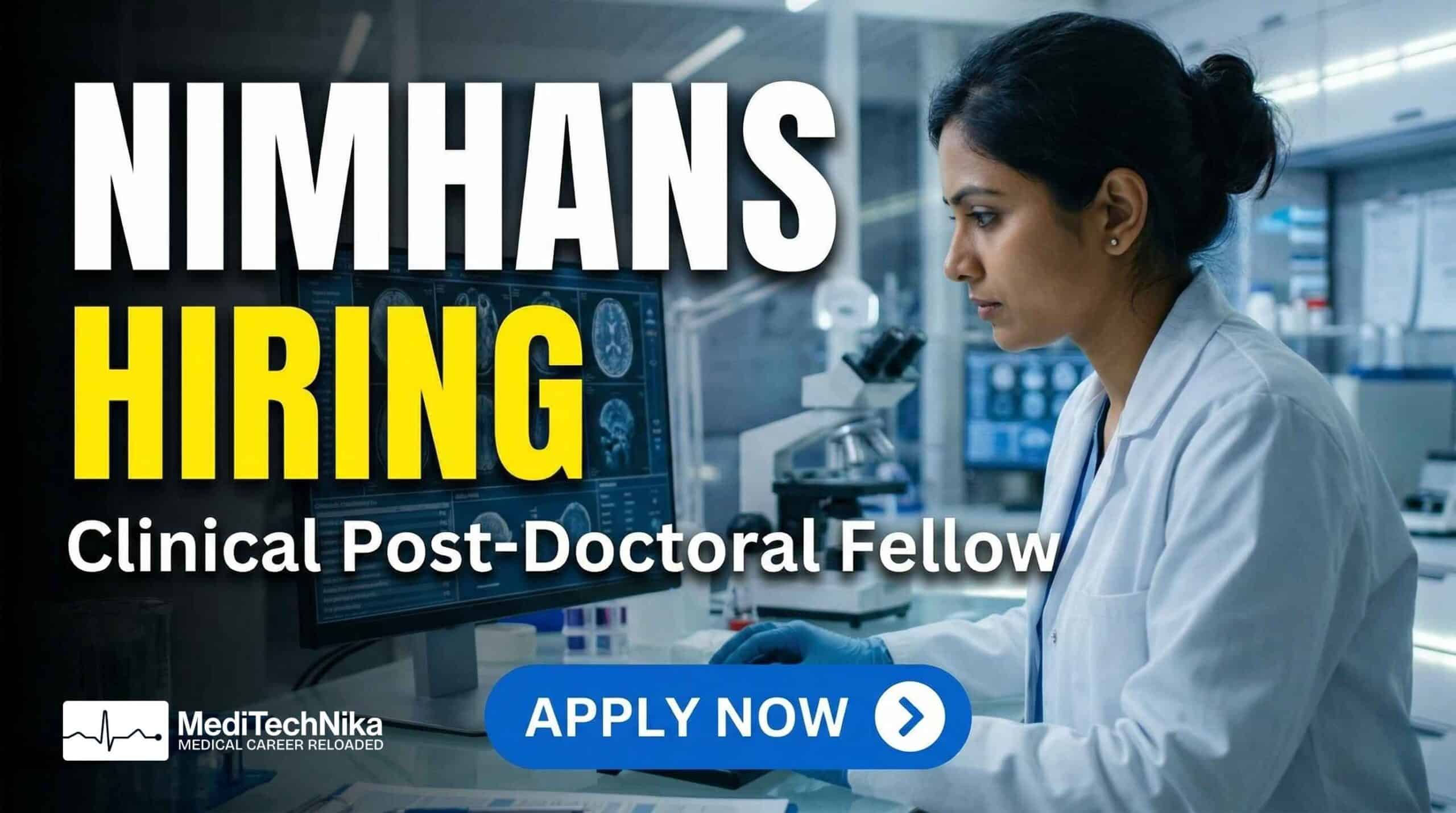 Looking for a doctor fellowship in one of India’s top neuro and mental health institutes? The National Institute of Mental Health and Neuro Sciences (NIMHANS) is offering an excellent opportunity for aspiring professionals through its Clinical Post-Doctoral Fellow position. This role is ideal for candidates seeking post doc careers, MD jobs, or DNB jobs in psychiatry with hands-on research exposure.