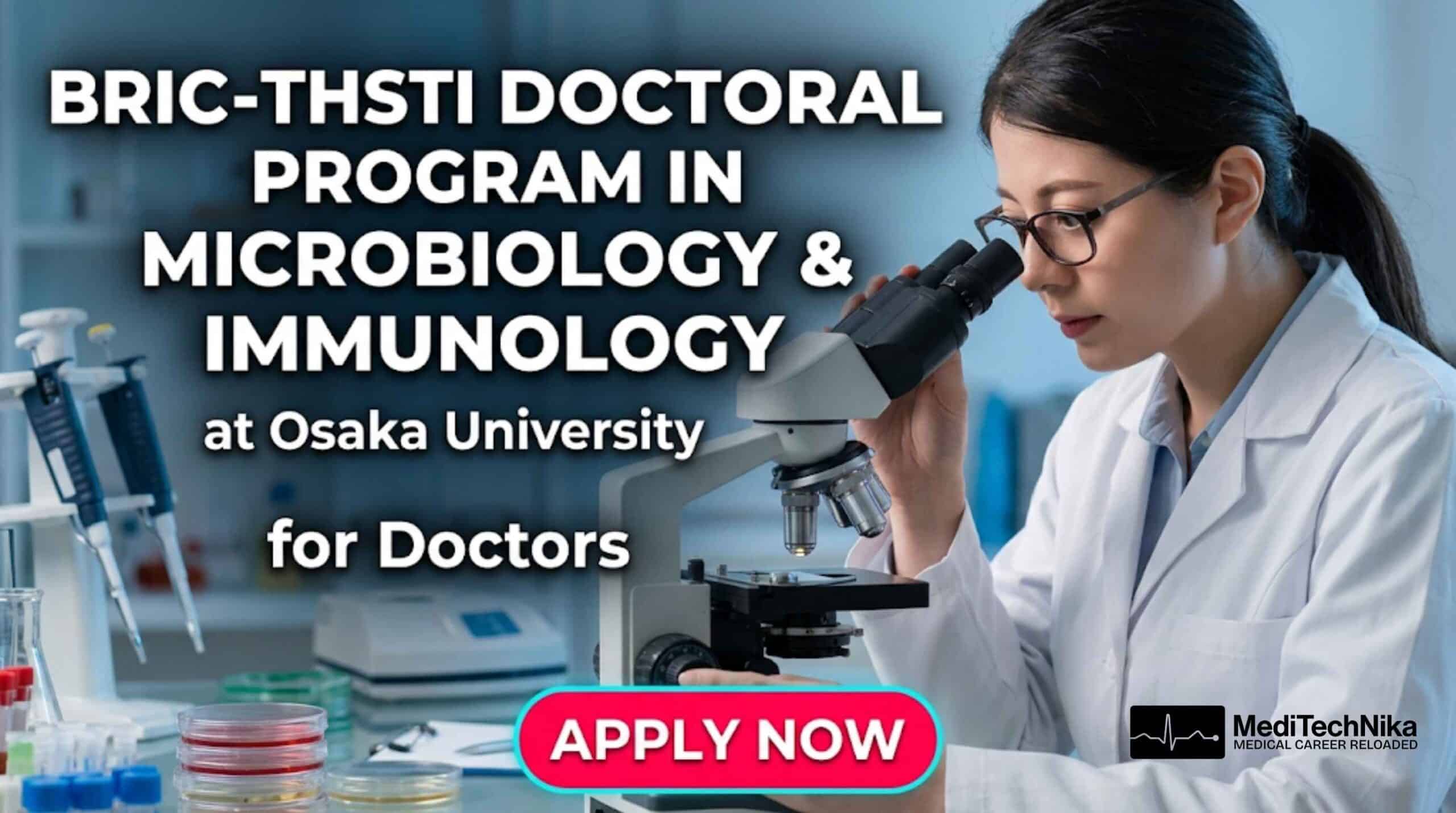 The doctoral program in Microbiology and Immunology at the Graduate School of Medicine, Osaka University, Japan, invites applications for admission in April 2027. The program is coordinated in collaboration with THSTI careers and is designed to train students in advanced life sciences research.