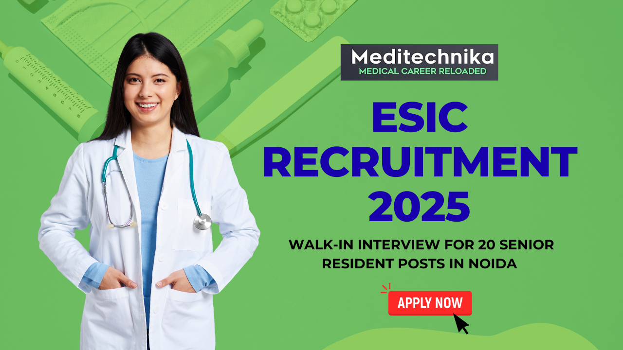 Explore the latest ESIC recruitment announcing 20 Senior Resident jobs at ESIC Medical College and Hospital, Sector 24, Noida, UP. This walk-in interview is a golden chance for MBBS candidates and medical graduates to secure medical jobs in a reputed government healthcare institution. If you are looking for a challenging and rewarding MBBS vacancy, apply now to be part of ESIC’s progressive medical team handling diverse clinical specialties.
