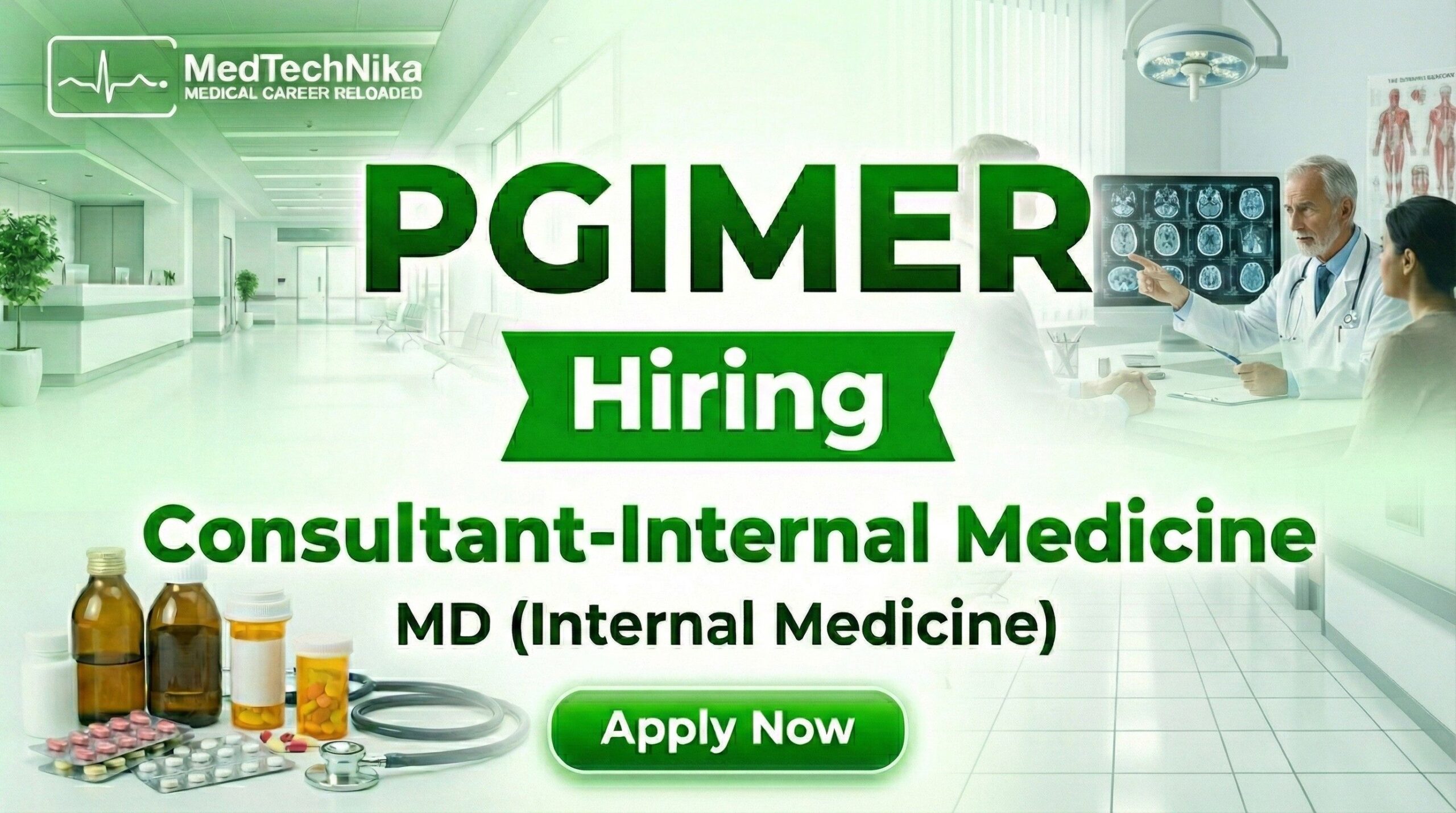 PGIMER Careers: The Postgraduate Institute of Medical Education & Research (PGIMER), Chandigarh, invites applications for the position of Consultant – Internal Medicine under the project “Teleconsultation Services for Ayushman Bharat Health & Wellness Centres under the Hub & Spoke Model using the e-Sanjeevani HWC Application (C-DAC Mohali) in Haryana State.” This role offers a unique opportunity to contribute to digital healthcare expansion and deliver specialist medical expertise through teleconsultation.