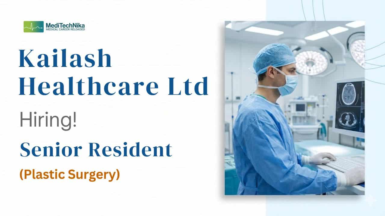 Healthcare Job: Kailash Healthcare Ltd., part of the esteemed Kailash Group of Hospitals, is inviting applications for the position of Senior Resident – Plastic Surgery at its Greater Noida facility. This role offers an excellent opportunity for qualified plastic surgeons to work in a high-volume, multidisciplinary hospital environment while contributing to advanced surgical care, research, and academic growth.