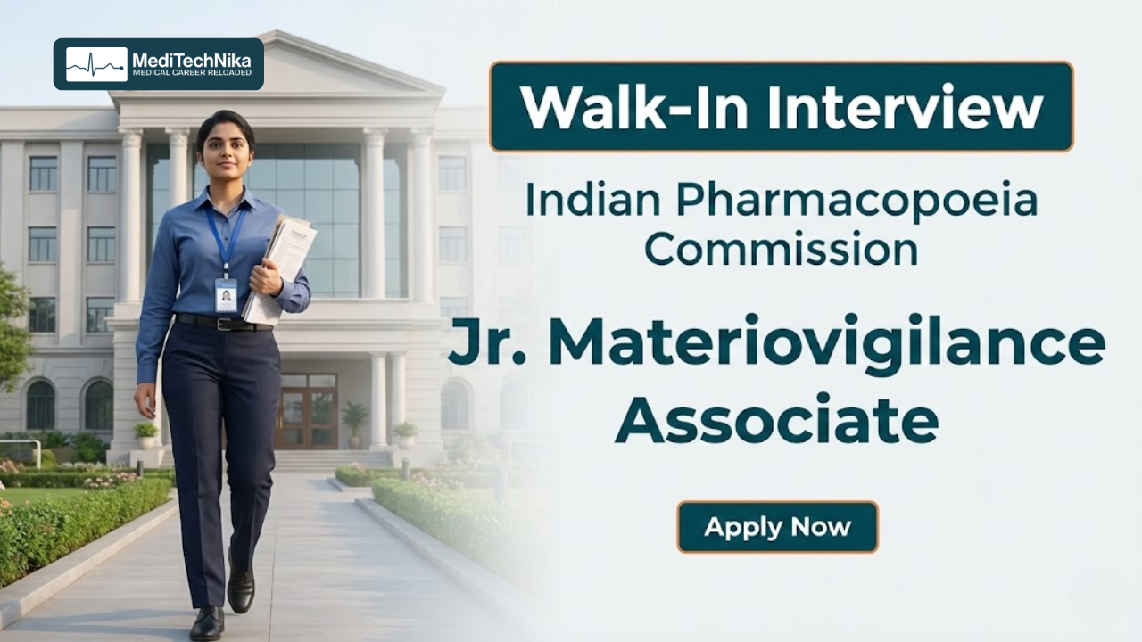 Indian Pharmacopoeia Commission Careers: The Indian Pharmacopoeia Commission (IPC), an autonomous organization under the Ministry of Health & Family Welfare, Government of India, invites eligible candidates for a walk-in interview to fill contractual positions under the Materiovigilance Programme of India (MvPI). This opportunity is ideal for early-career professionals looking to build a career in medical device safety and regulatory surveillance through the Indian Pharmacopoeia Commission Careers.