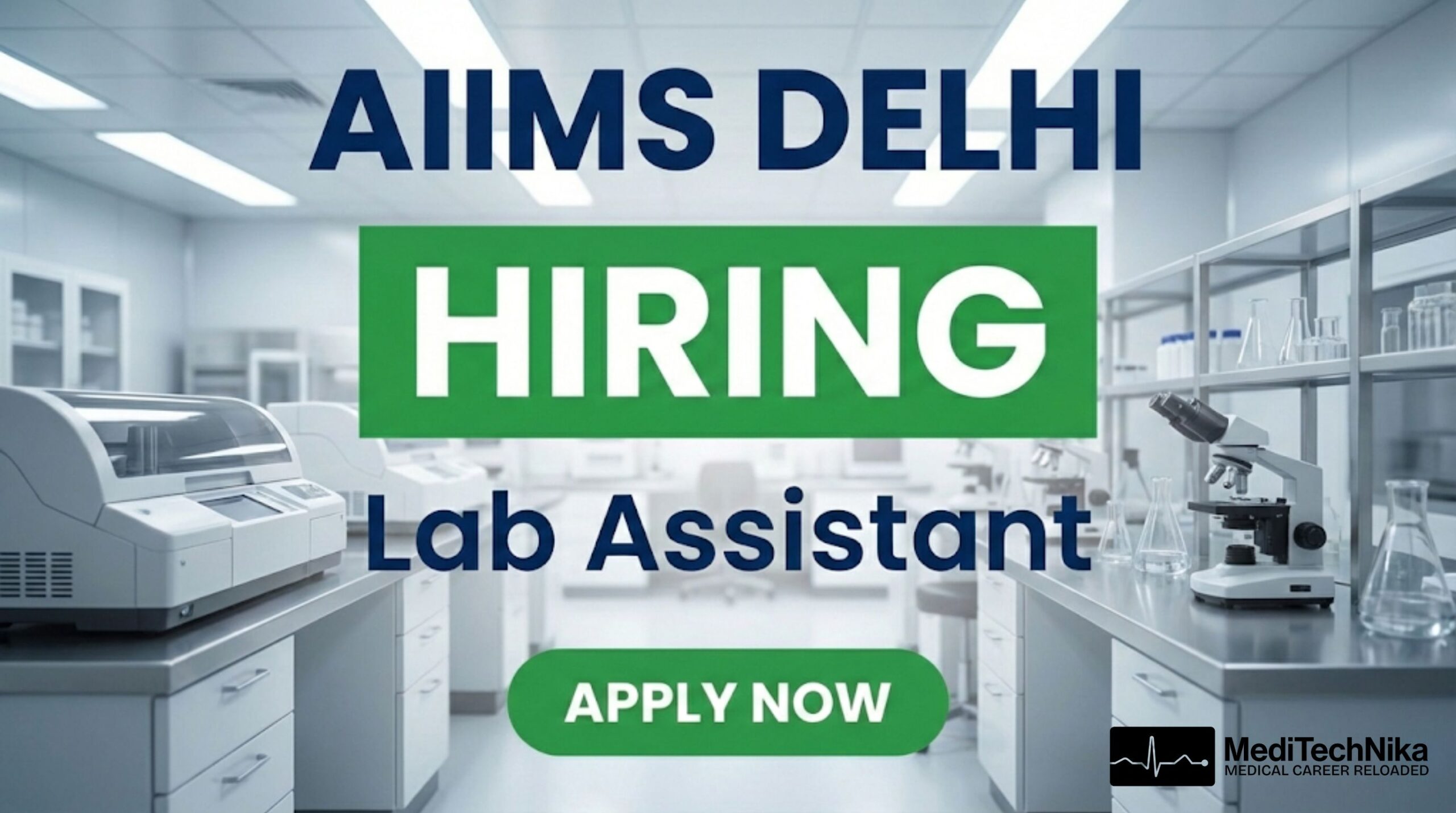 All India Institute of Medical Sciences (AIIMS), New Delhi, has announced a new lab assistant job under a government-funded research project through the latest AIIMS recruitment notification. This opportunity is open for candidates holding a Diploma in Medical Laboratory Techniques, making it an excellent option for aspirants looking for DMLT jobs in reputed medical research institutions. The position is offered at the National Drug Dependence Treatment Centre (NDDTC), AIIMS, with selection through a walk-in interview process.