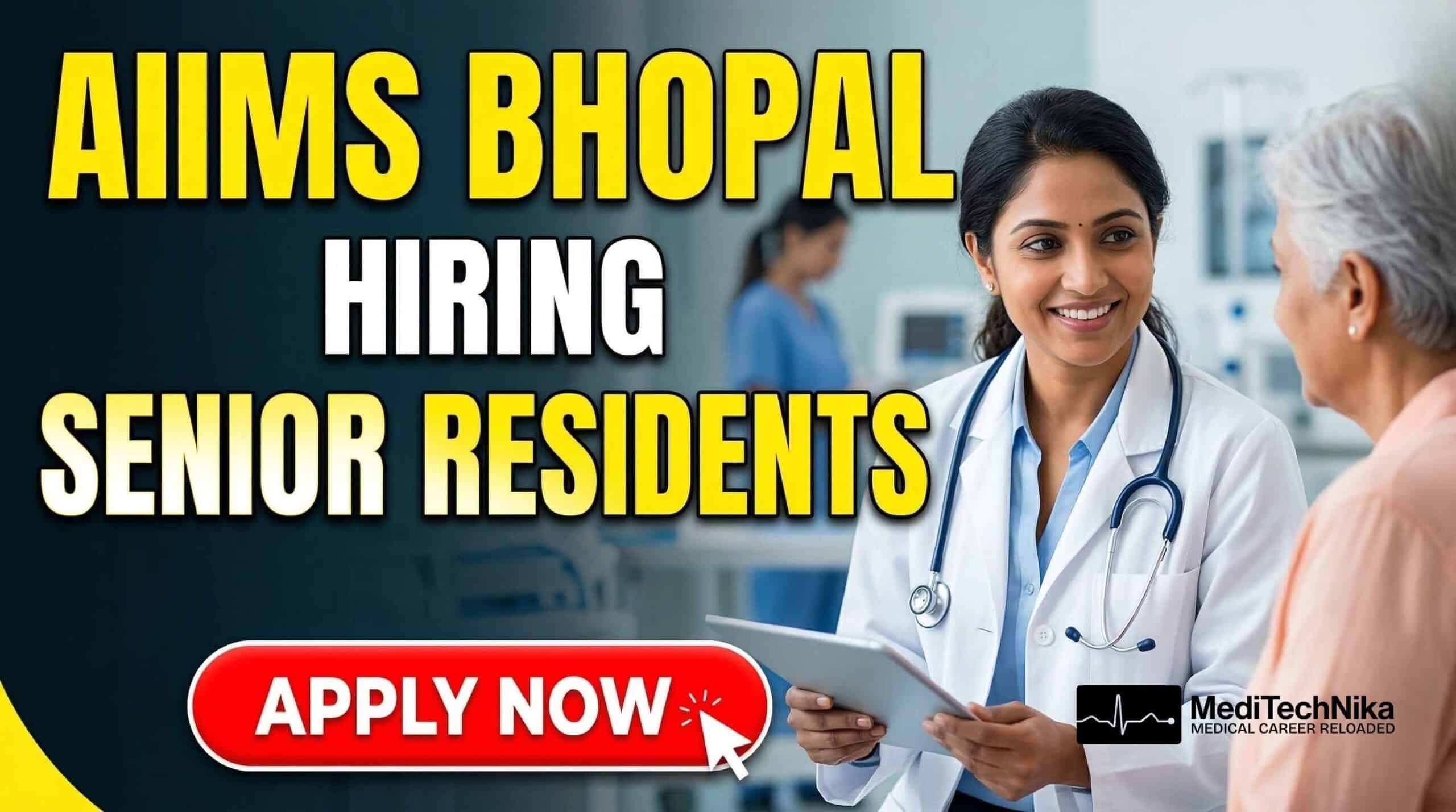 Looking for an exciting MD job opportunity in one of India’s top medical institutes? All India Institute of Medical Sciences Bhopal has announced a rolling advertisement for Senior Residents (Non-Academic) on a temporary basis. This is a great chance for medical professionals seeking AIIMS careers and medical jobs in Bhopal to advance their clinical experience and work in a prestigious healthcare environment.