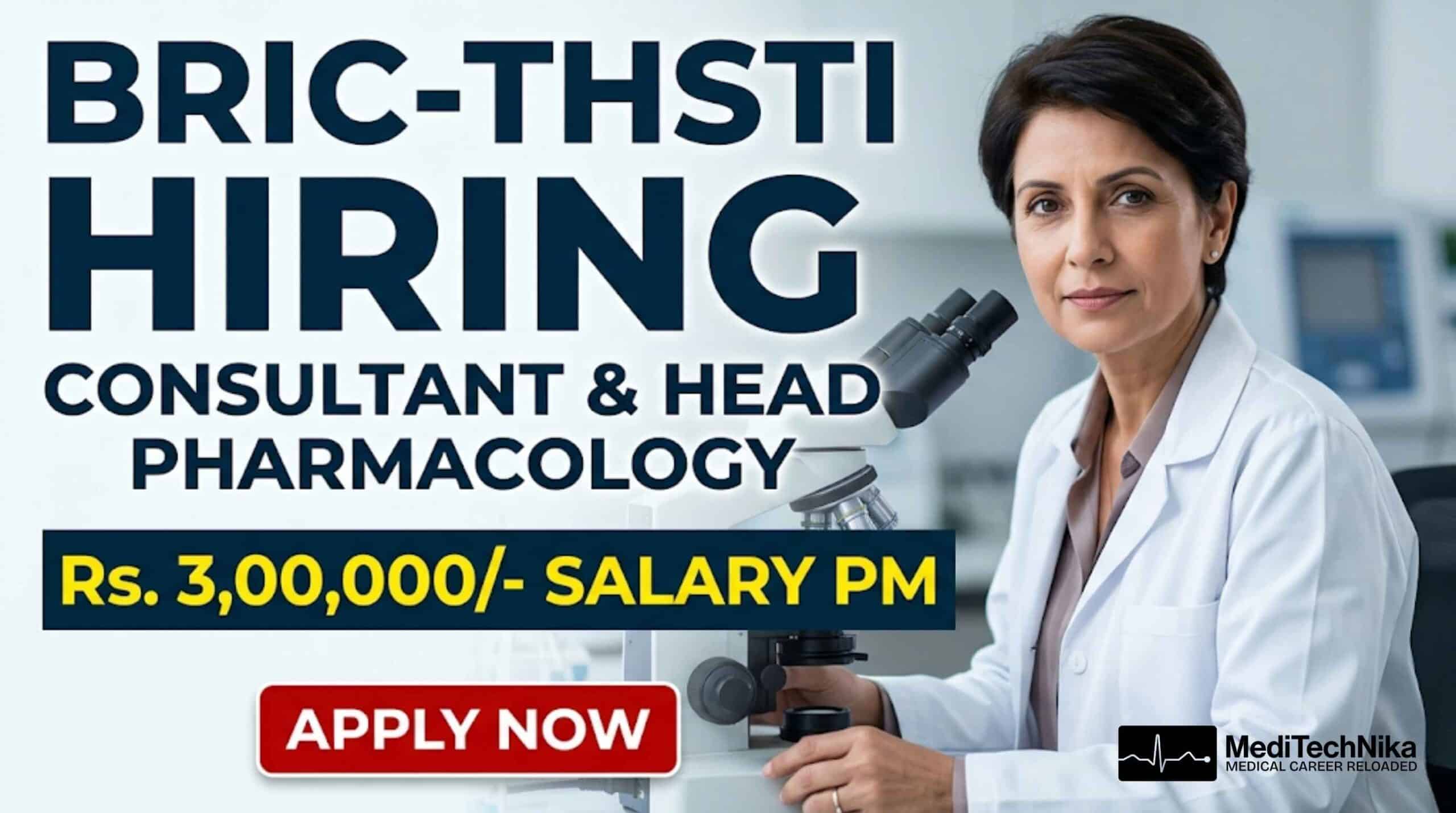 MD Pharmacology Job Alert: Consultant & Head Pharmacology with Rs. 3,00,000/- salary pm at BRIC-THSTI