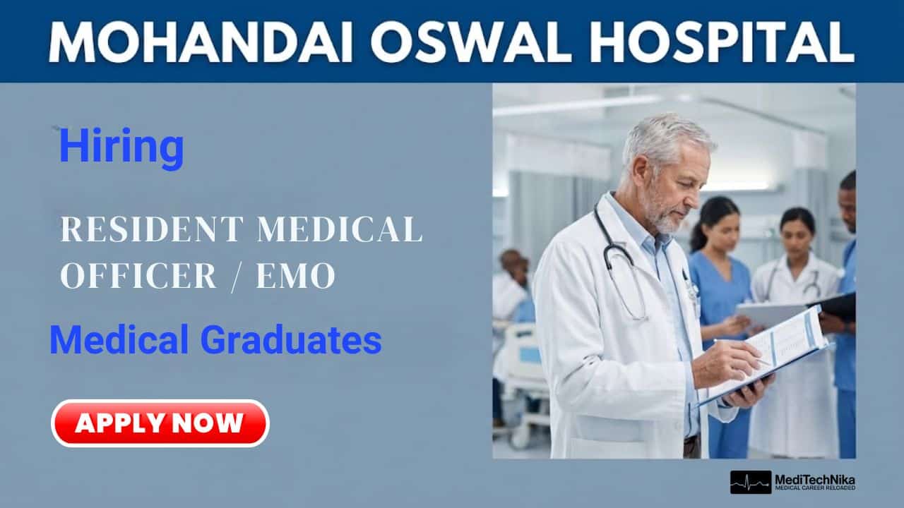 Medical Job: Mohandai Oswal Hospital, a premier healthcare institution in Punjab, is inviting applications from qualified MBBS professionals for the role of Resident Medical Officer/EMO. This is an excellent opportunity for early-career doctors to work in a dynamic clinical environment, provide critical patient care, and gain hands-on experience in both general and emergency medicine within a leading multispecialty and oncology-focused hospital.