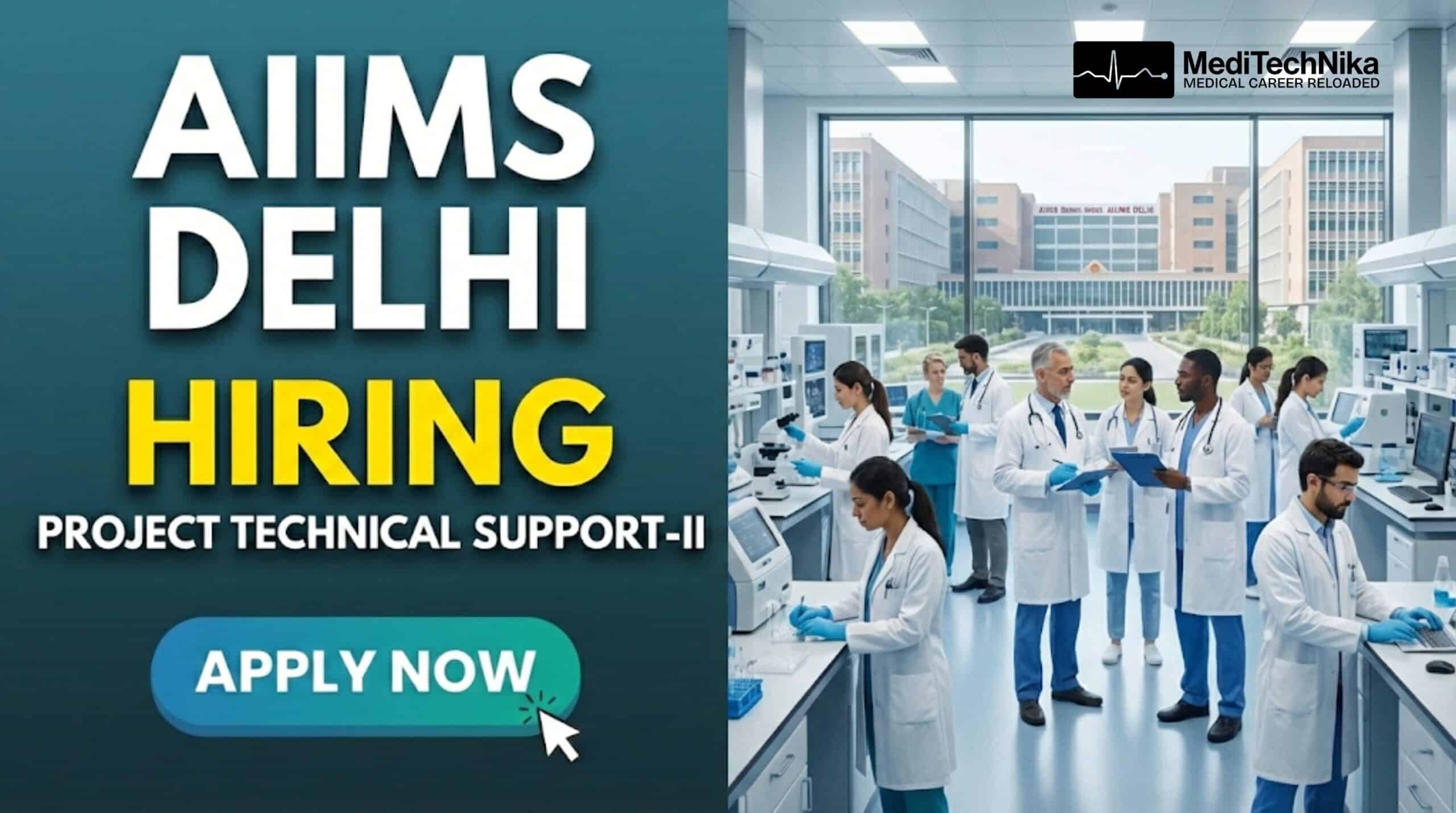 All India Institute of Medical Sciences (AIIMS), New Delhi, has announced an MLT job opening for the post of Project Technical Support-II under a contractual research project. This latest update under AIIMS recruitment is ideal for candidates seeking DMLT jobs and entry-level technical support jobs in a reputed government medical institution.