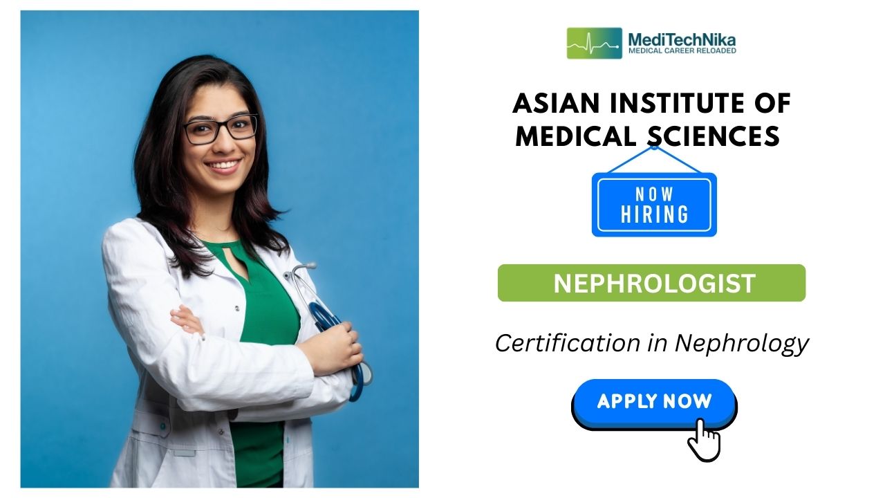 Nephrologist Jobs: Asian Institute of Medical Sciences (AIMS), Faridabad, is seeking a highly skilled and compassionate nephrologist to join its premier super specialty healthcare team. This full-time, on-site role offers an exceptional opportunity to practice advanced nephrology in a technologically sophisticated, patient-centric environment.