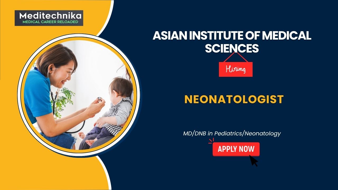 Pediatrics Jobs- The Asian Institute of Medical Sciences (AIMS), Faridabad, is inviting applications for the position of Neonatologist. This role offers an exciting opportunity to work in one of India’s most advanced tertiary care hospitals, providing specialized care to newborns and contributing to excellence in pediatric and neonatal medicine. Join a dynamic team committed to delivering cutting-edge healthcare and compassionate patient outcomes.