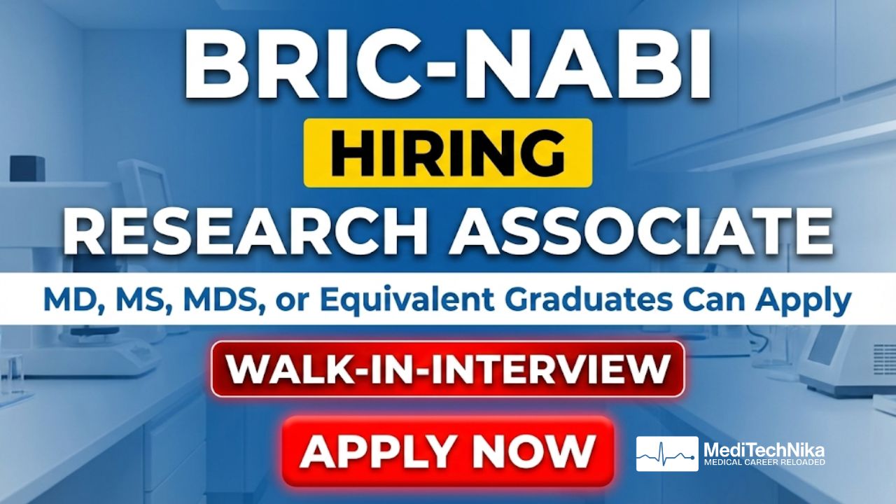 BRIC-National Agri-Food and Biomanufacturing Institute (BRIC-NABI), an autonomous institute under the Department of Biotechnology, Government of India, is inviting applications for a Research Associate job under the NABI CORE project. This opening is ideal for candidates seeking research associate jobs in India, including professionals with an MD or MDS background, who are interested in agricultural nutrition, bioinformatics, and translational research at a premier BRIC institute.