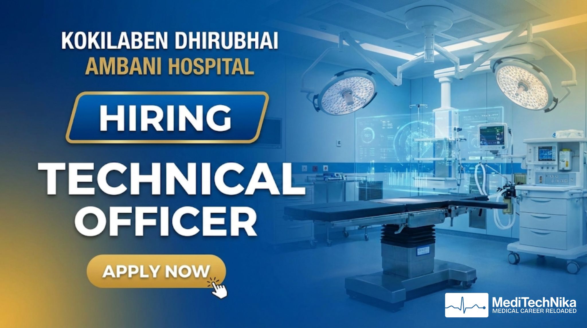 The Technical Officer job at Kokilaben Dhirubhai Ambani Hospital offers an excellent opportunity to work with one of India’s leading healthcare institutions. Based in Mumbai, this full-time, on-site role focuses on delivering high-quality healthcare services, supporting multidisciplinary medical teams, and contributing to clinical excellence, research, and patient satisfaction.